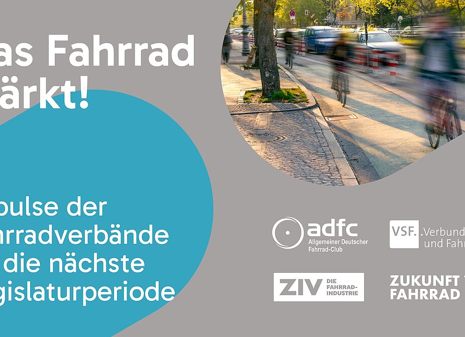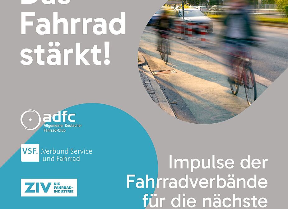 Der Allgemeine Deutsche Fahrrad-Club (ADFC) und die Fahrradwirtschaftsverbände Verbund Service und Fahrrad (VSF), ZIV – Die Fahrradindustrie und Zukunft Fahrrad fordern in ihrem gemeinsamen Impulspapier „Das Fahrrad stärkt!“ entschlossene politische Maßnahmen, um das Fahrrad in der Wirtschafts- und Verkehrspolitik der neuen Bundesregierung fest zu verankern. Die zentralen Anliegen der Verbände: den Fahrradwirtschaftsstandort Deutschland stärken und die vielfältigen Potenziale des Radverkehrs ausschöpfen.